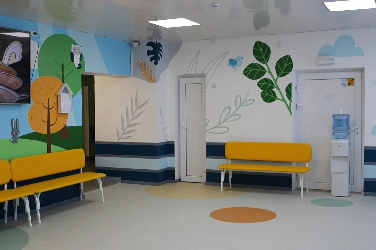 Полностью отремонтированы пол, потолок, стены. Также в приемном покое появился широкоформатный телеэкран, на котором демонстрируются мультфильмы для детей и полезная информация для родителей, в том числе по профилактике респираторных заболеваний. По периметру разместили новые диваны. Помимо этого, в помещении впервые смонтировали видеонаблюдение.