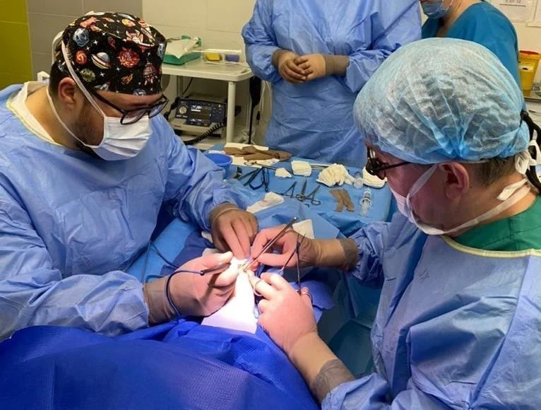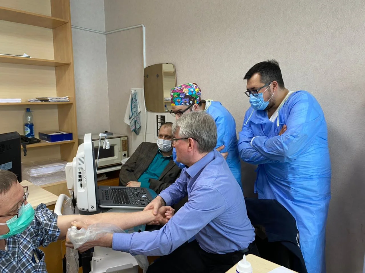 Для проведения вмешательств по формированию постоянного сосудистого доступа - нативной фистулы было отобрано 10 пациентов. Со стороны гусевского сосудистого центра манипуляции в операционной проводили заведующий отделением реэндоваскулярной хирургии, главный реэндоваскулярный хирург регионального минздрава Максим Агарков, врач – реэндоваскулярный хирург Алексей Сафуанов и сосудистый хирург Ольга Сафуанова.